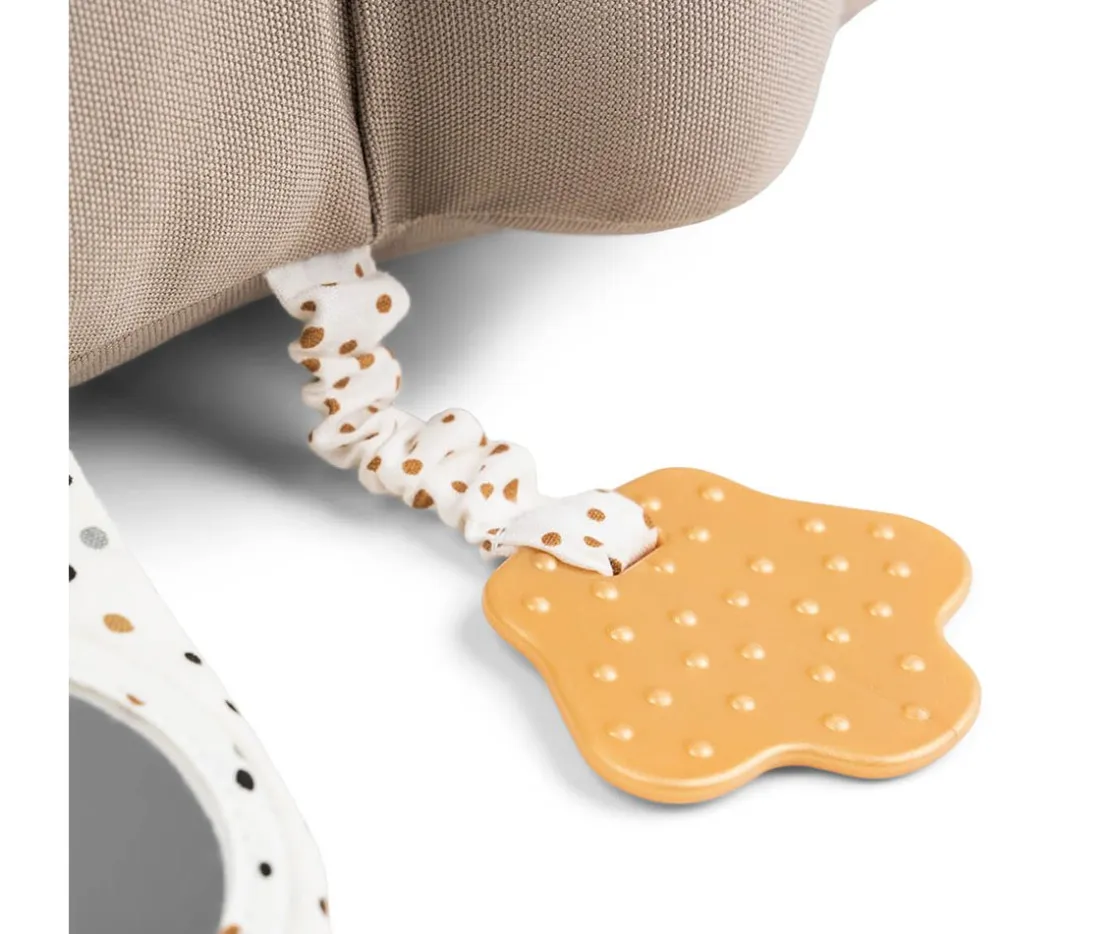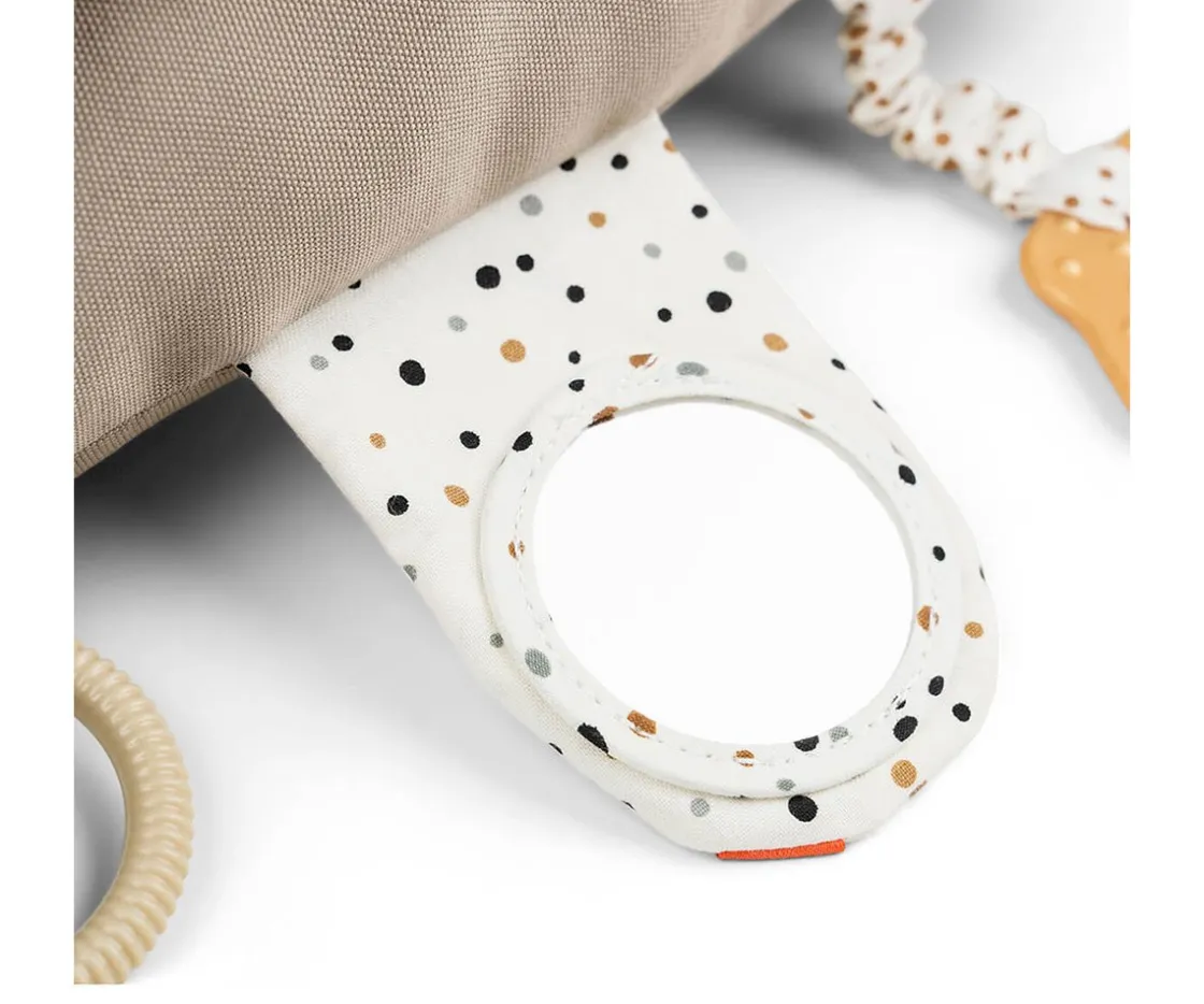 Distintas texturas, espejo, mordedor y anillos para fácil agarre.