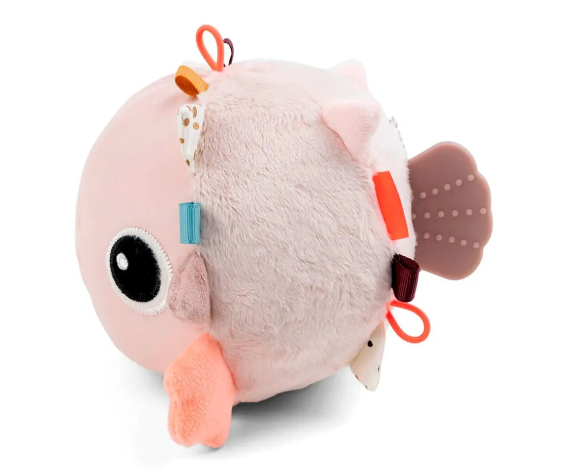 La forma redonda de Puffee es perfecta para rodar. Dale un empujón y hará un sonido intrigante, animando a los más pequeños a gatear tras él. El lindo mordedor de silicona con forma de aleta tiene diferentes texturas para estimular y calmar la picazón en las encías.