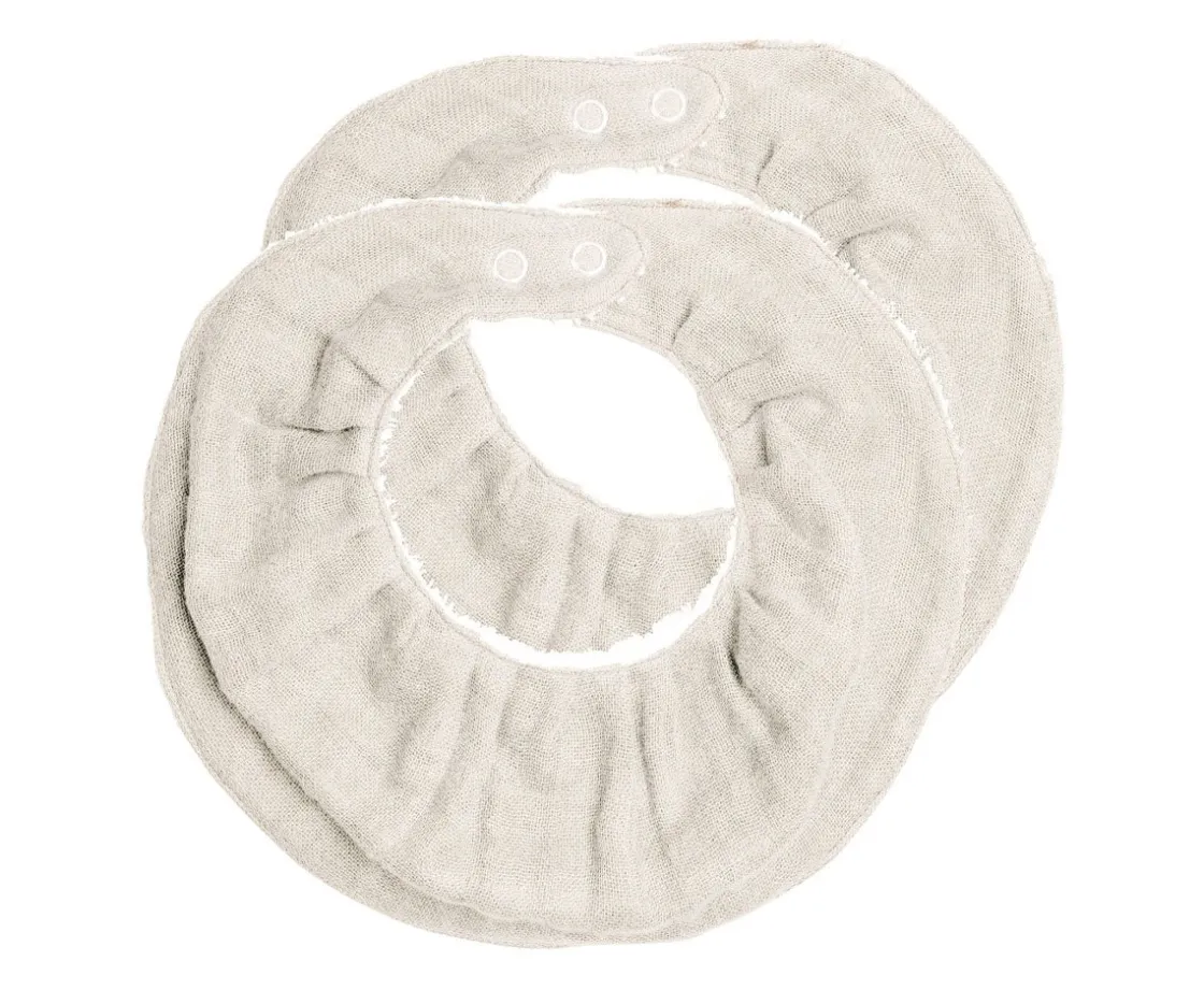 Secababitas con volantes fabricados en muselina de algodón orgánico, perfecto cuando tu bebé comienza con el proceso de dentición.