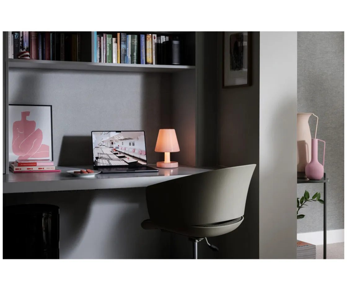 Ilumina tus espacios con estilo gracias a la Edison The Ambiance de Fatboy, una lámpara de mesa recargable diseñada para aportar calidez y confort a cualquier habitación. Su diseño redondeado, acabado brillante y suaves tonalidades pastel la convierten en un objeto decorativo que combina funcionalidad y estética moderna.