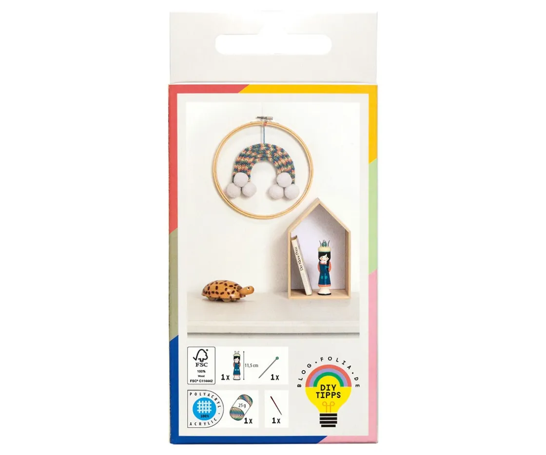 Con este kit, los pequeños pueden elaborar pulseras, llaveros, formas decorativas, animales de cuerda o letras de lana. Es una actividad perfecta para hacer en casa o en el colegio, ya que no necesita aguja ni conocimientos previos.