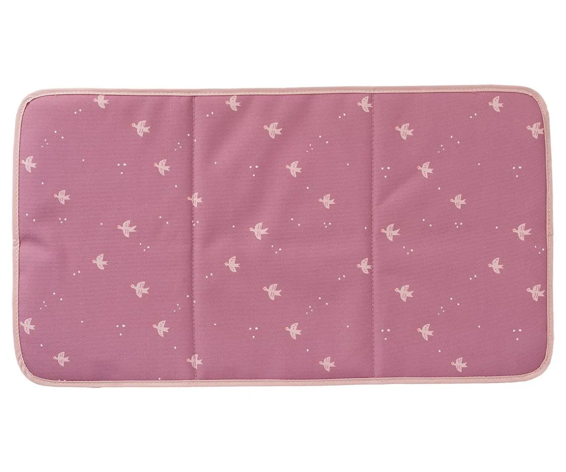 Este bonito bolso cambiador está equipado con todo lo que necesitas para cuidar de tu peque fuera de casa. Tiene un cómodo bolsillo para meter las toallitas y espacio suficiente para guardar hasta dos pañales. Incluye un cambiador plegable con el bonito diseño de golondrinas de Fresk.