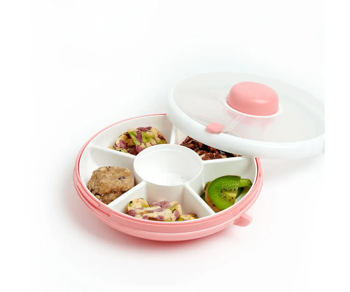 Snack Spinner de la marca GöBe es ideal para llevar una gran variedad de snacks, frutas y verduras, a cualquier lugar y sin riesgo de derrames. La correa de mano es perfecta para que los peques la transporten fácilmente y con la hoja de pegatinas podrás personalizarla con el nombre de tu peque.