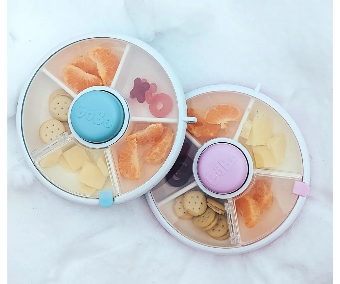 Snack Spinner de la marca GöBe es ideal para llevar una gran variedad de snacks, frutas y verduras, a cualquier lugar y sin riesgo de derrames. La correa de mano es perfecta para que los peques la transporten fácilmente y con la hoja de pegatinas podrás personalizarla con el nombre de tu peque.