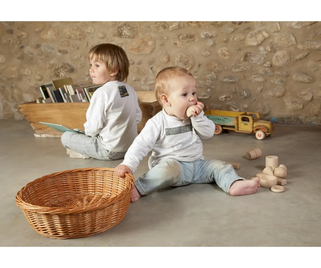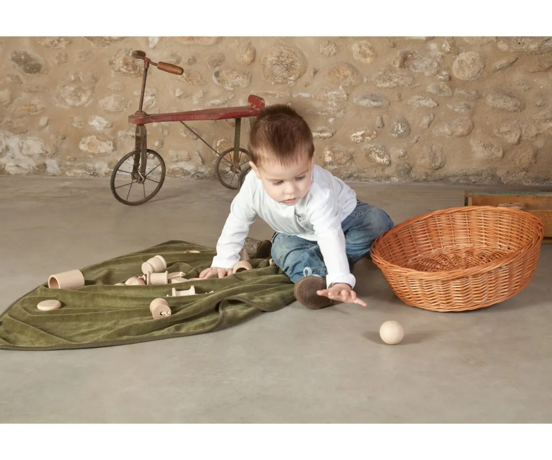El juego de elementos para la cesta de Grapat es una parte de entre todos los materiales que se pueden incluir, atendiendo a la necesidad de poner al alcance de los niños elementos de metal, ropa, naturales, vidrio, etc