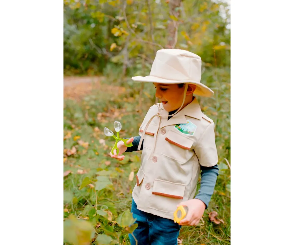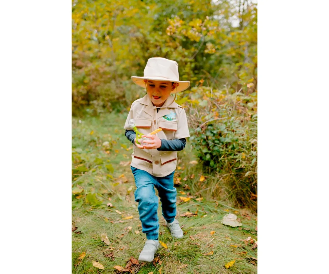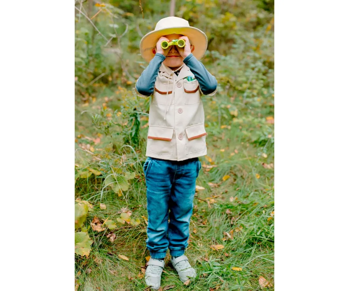 - Incluye: camisa, gorro, tarro de insectos, binoculares, atrapa insectos