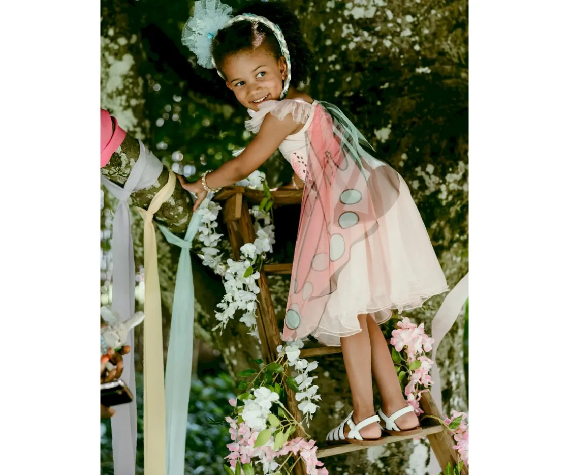 Great Pretenders trae el disfraz Mariposa Secreta, diseñado con un estilo de camiseta sin mangas incluye tul en los ttirantes y una grandes alas de mariposa de malla estampadas que cuentan con presillas para los dedos con las que podrás revolotear y aletear.