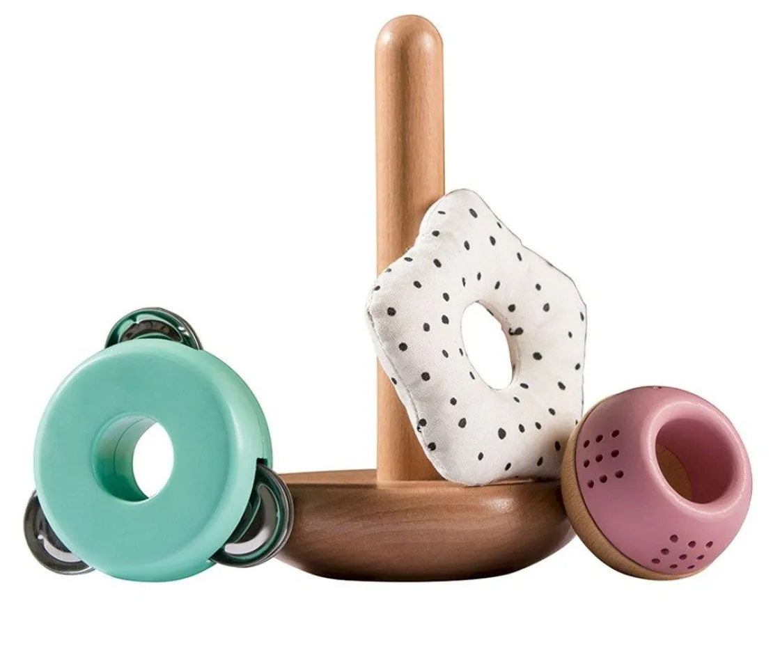 Apila las diferentes piezas y construye la torre, pero no sin antes aprender sobre los sonidos y las texturas. Pensada no solo para entretener, ayuda a mejorar la coordinación mano-ojo y estimula los sentidos.