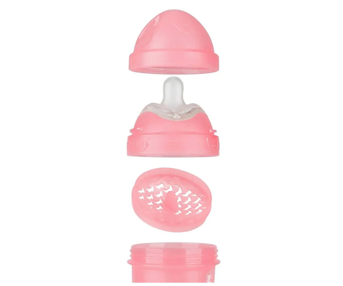 - Doble sistema anticólico. Por su forma, evita que entre aire en la boca del bebé. Reduce gases y cólicos