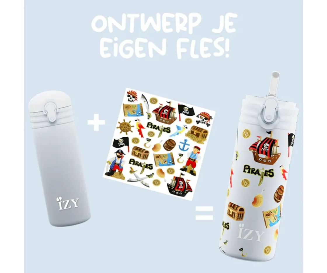 Las botellas térmicas Izy están diseñadas especialmente para los peques. Cuenta con una hoja de calcomanías para que puedan personalizarla como más les guste.