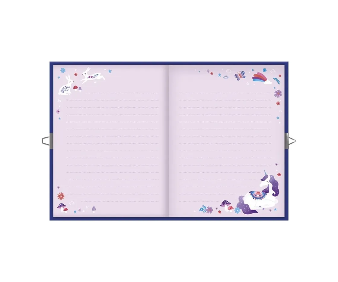Con el diario Unicorn de Janod tendrás tus deseos a salvo entre sus páginas gracias a su candado en forma de corazón.Están mágicamente ilustradas con arcoíris, unicornios y detalles que parecen que han salido de un bosque encatado, además, el canto de sus hojas son metalizadas dándole un encanto especial.