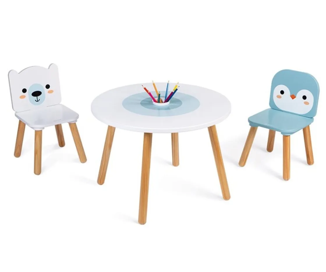 Janod Mesa y 2 Sillas Hielo Marino^ Mobiliario Infantil