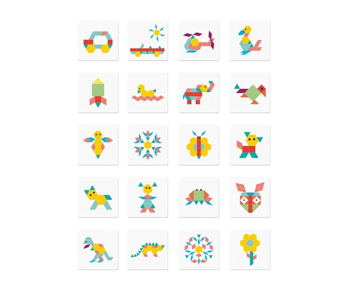 Conviértete en un diseñador con esta cajita magnética de madera que contiene 120 imanes de diferentes formas geométricas y colores para que puedas realizar tus creaciones.