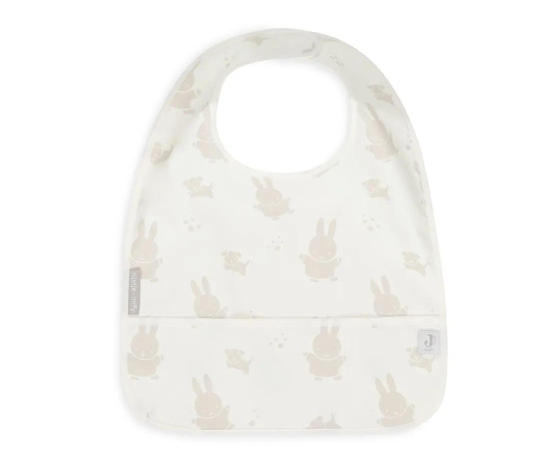 Set de 2 baberos de la colección Miffy & Snuffy en color arena y blanco roto de la marca Jollein, con bolsillo recogemigas en la parte delantera y que se ajustan cómodamente al cuello del bebé mediante velcro en la parte posterior.
