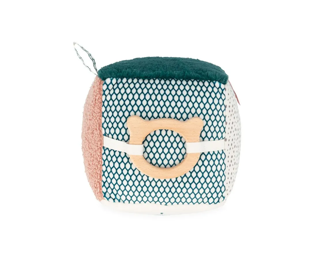 Este cubo sensorial, suave y mullido, puede atraparse y manipularse fácilmente. Sus numerosas caras de múltiples materiales, texturas y colores permiten desarrollar especialmente el tacto de los peques. La adición de la pieza de madera de gato, el papel ruidoso y las cintas son otros elementos que participarán en su despertar sensorial. Este cubo sensorial es ideal para desarrollar los sentidos del bebé y su curiosidad.