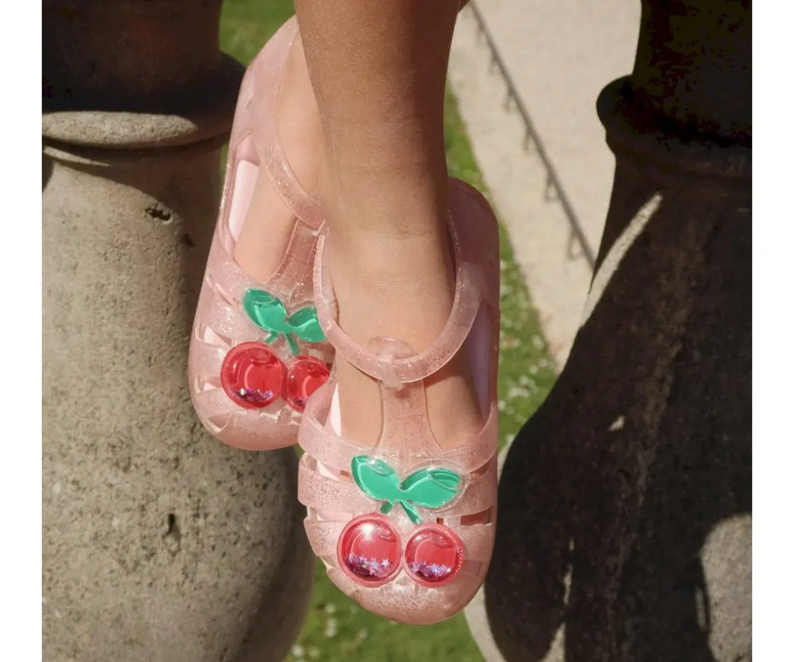 Las divertidas cangrejeras Cherry de Konges Slojd están adornadas con purpurina y la característica cereza de la marca en relieve.