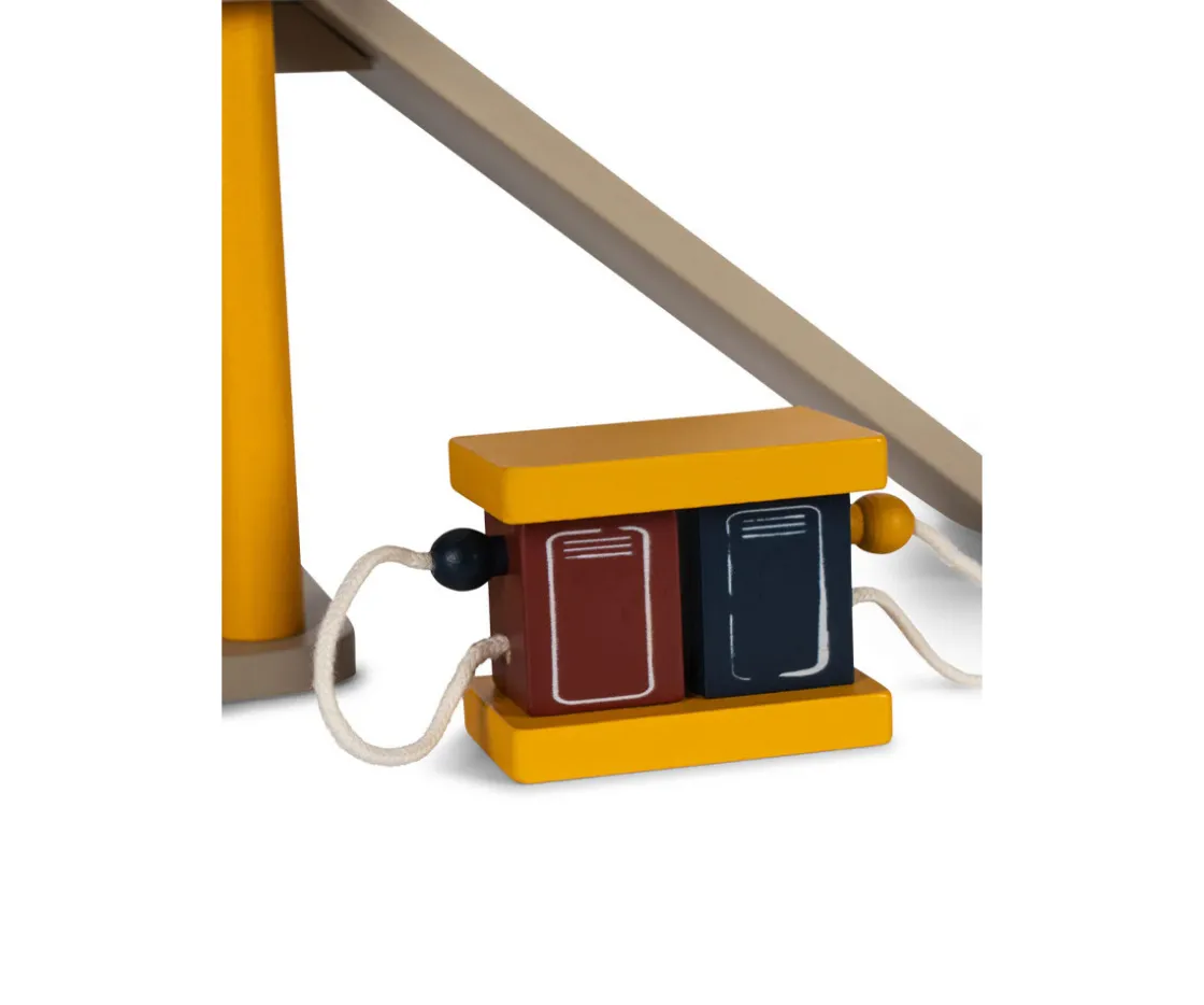 Konges Slojd presenta este lavadero de coches de madera diseñado para horas de juego creativo. Incluye una rampa y dos mini coches, perfectos para que los niños simulen el lavado y cuidado de sus vehículos, que fomenta el desarrollo de su imaginación, coordinación y habilidades motoras finas.