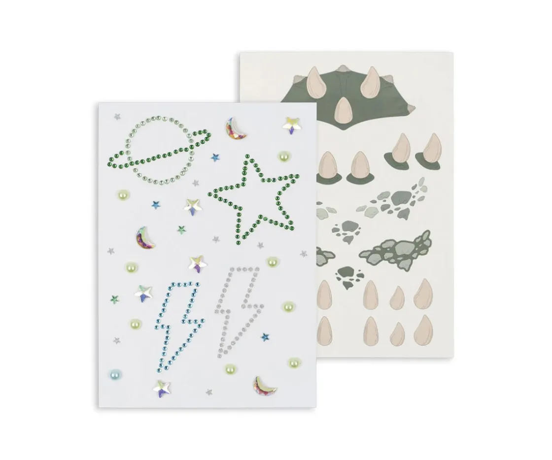 Pásalo en grande y decora tu cuerpo con una hoja de tatuajes temporales y otra hoja de piedras preciosas brillantes de Konges Slojd.