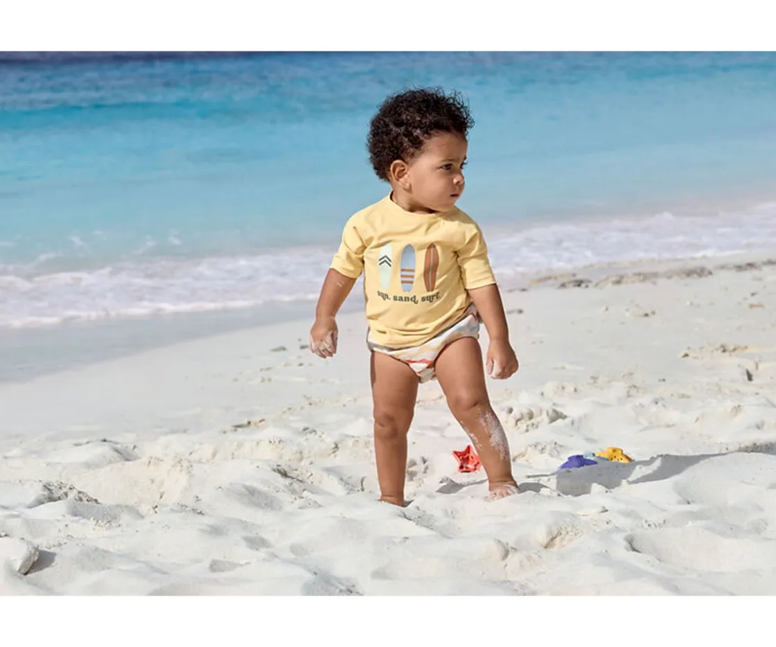 - ATENCIÓN: El uso de esta camiseta no sustituye jamás el uso de crema protectora y se debe de evitar la exposición solar del niño entre las horas en que el sol está en su punto más álgido