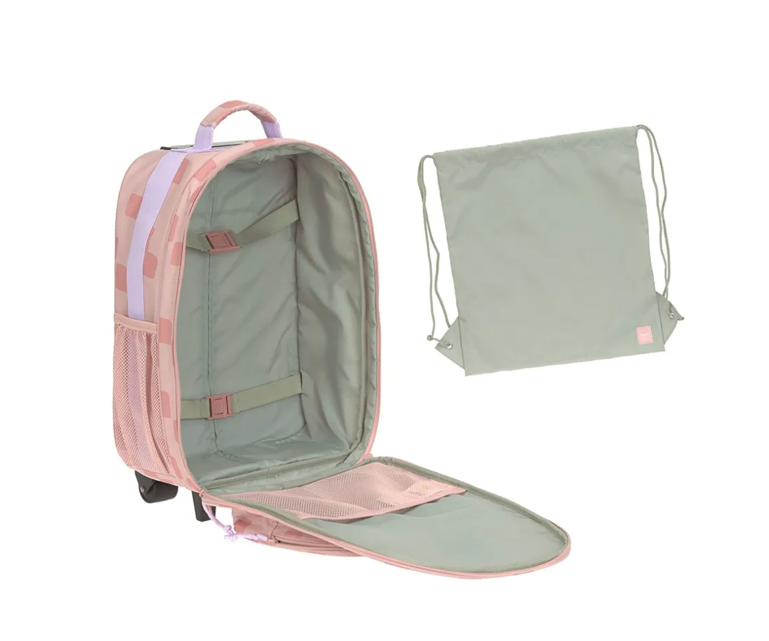 Maleta infantil LÄSSIG en color rosa de la colección Pattern Party con gran espacio para que tu peque esté listo en cualquier viaje.