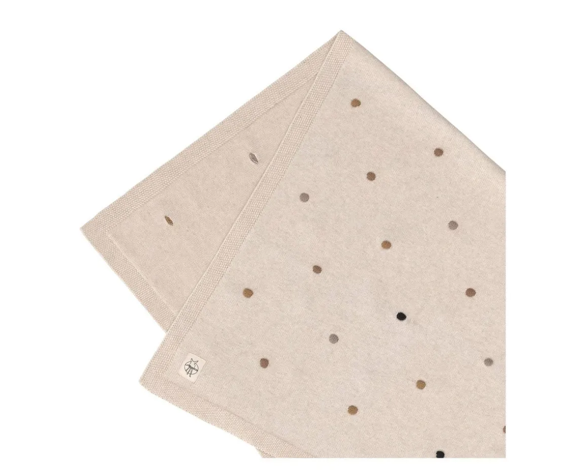 Esta manta de bebé está tejida con un patrón de puntos beige, hecha de algodón orgánico certificado GOTS y ofrece una sensación de bienestar.