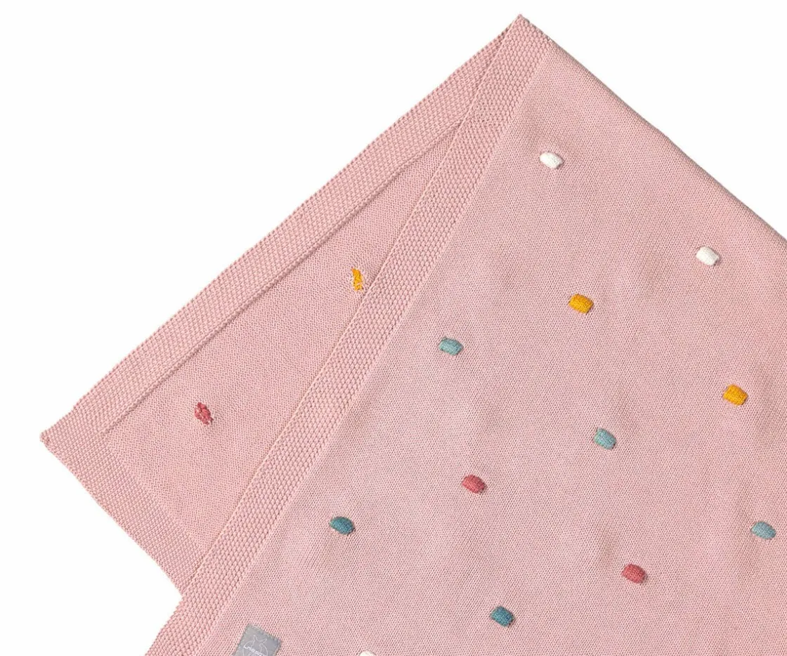 Esta manta de bebé está tejida con un patrón de puntos tridimensionales hecho de algodón orgánico certificado GOTS y ofrece una sensación de bienestar general.