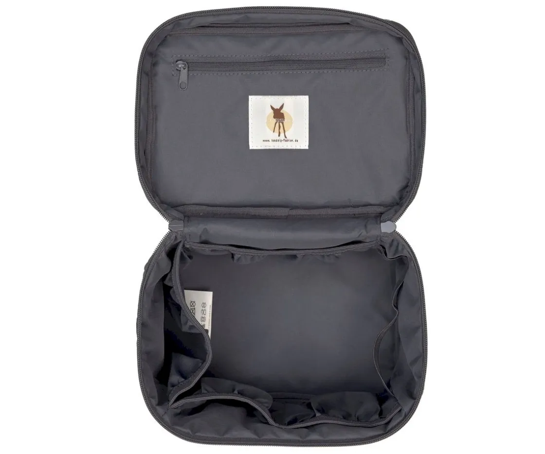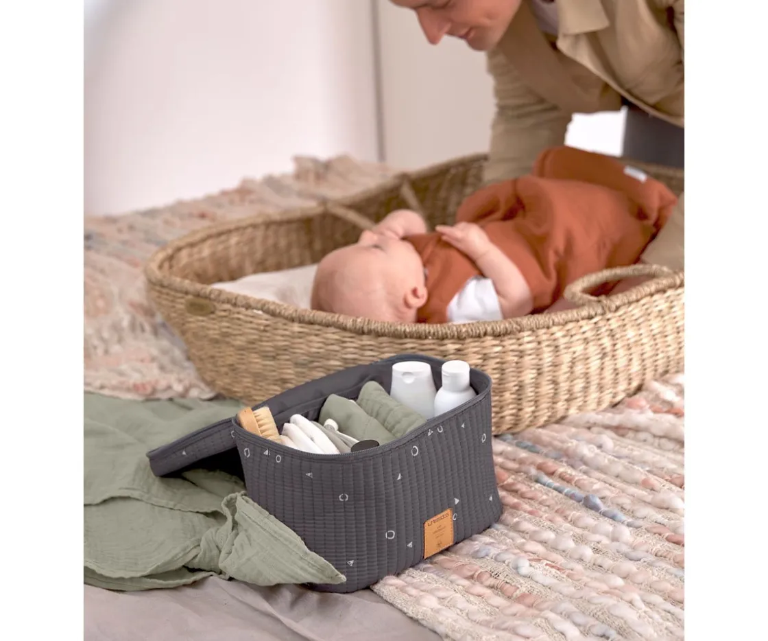 El neceser de la colección Universo Anthracite de no sirve solamente cómo bolsa de almacenaje para el cambiador, sino también es un práctico neceser para transportar a cualquier viaje.