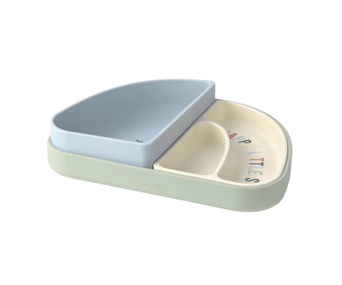 Set de 3 platos de silicona en forma de arcoíris de LÄSSIG, se pueden dividir en 2 cuencos y un plato de forma individual. Fácil de apilar y perfectos para que los peques coman de forma autónoma.