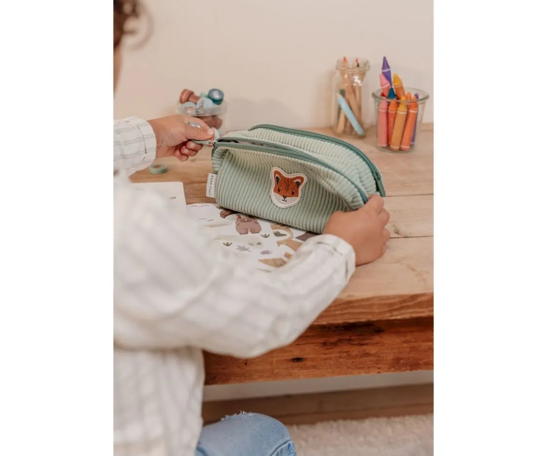 Estuche de la colección Forest Friends con parche bordado y tiradores de cremallera decorados para que los peques mantengan todos sus lápices, gomas y rotuladores seguros. Está forrado por dentro, cuenta con doble cremallera en la parte superior.