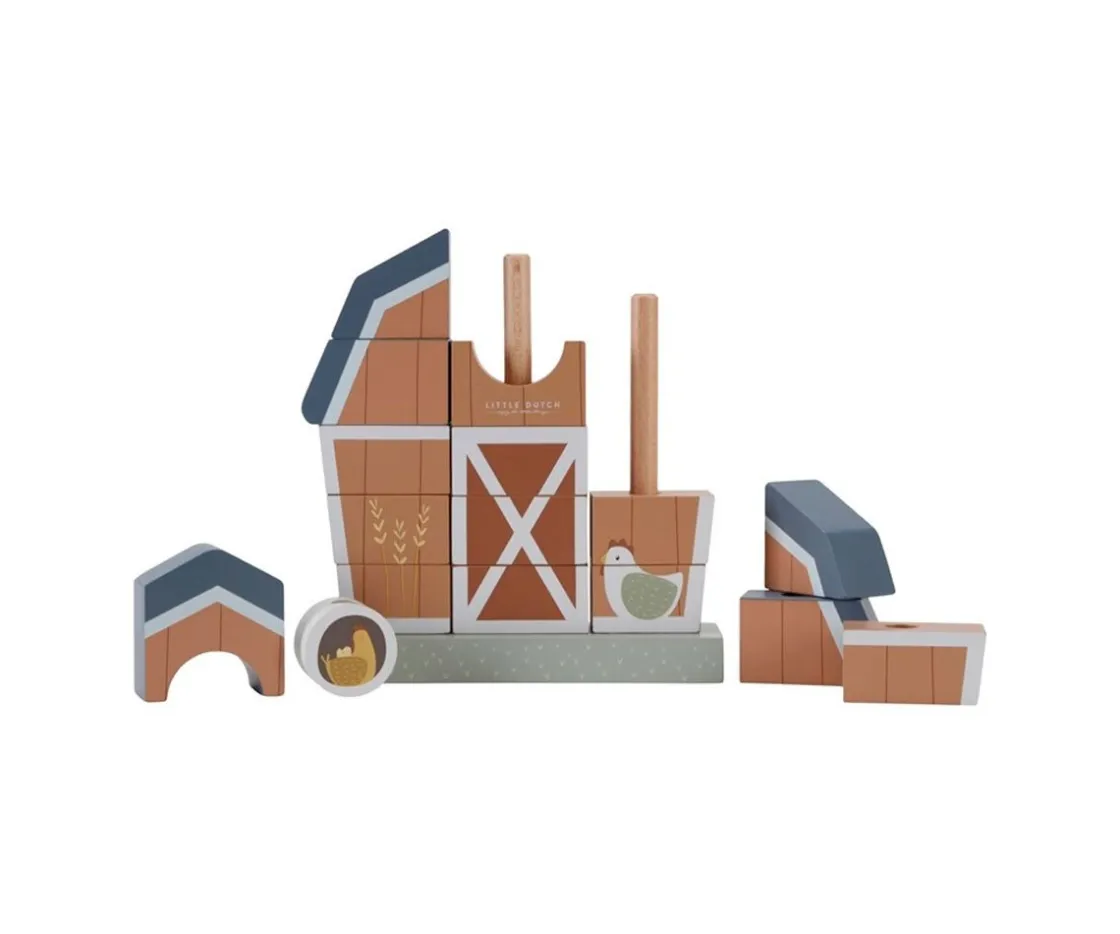 Divertida granja encajable de madera de Little Dutch. Los peques deberán colocar las piezas en el soporte una a una e intentar crear la granja. Esta forma de clasificar las formas estimula la coordinación mano-ojo y anima a los peques a reconocer formas y colores.