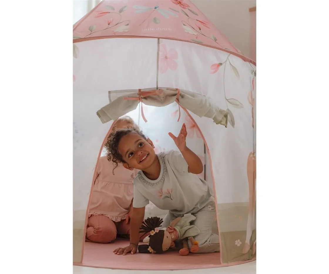 Tienda para jugar perfecta para la habitación infantil o para juegos en el jardín. Los pequeños tendrán horas de diversión entrando y saliendo de su castillo. Además, la cortina se enrolla dejando una puerta más amplia.