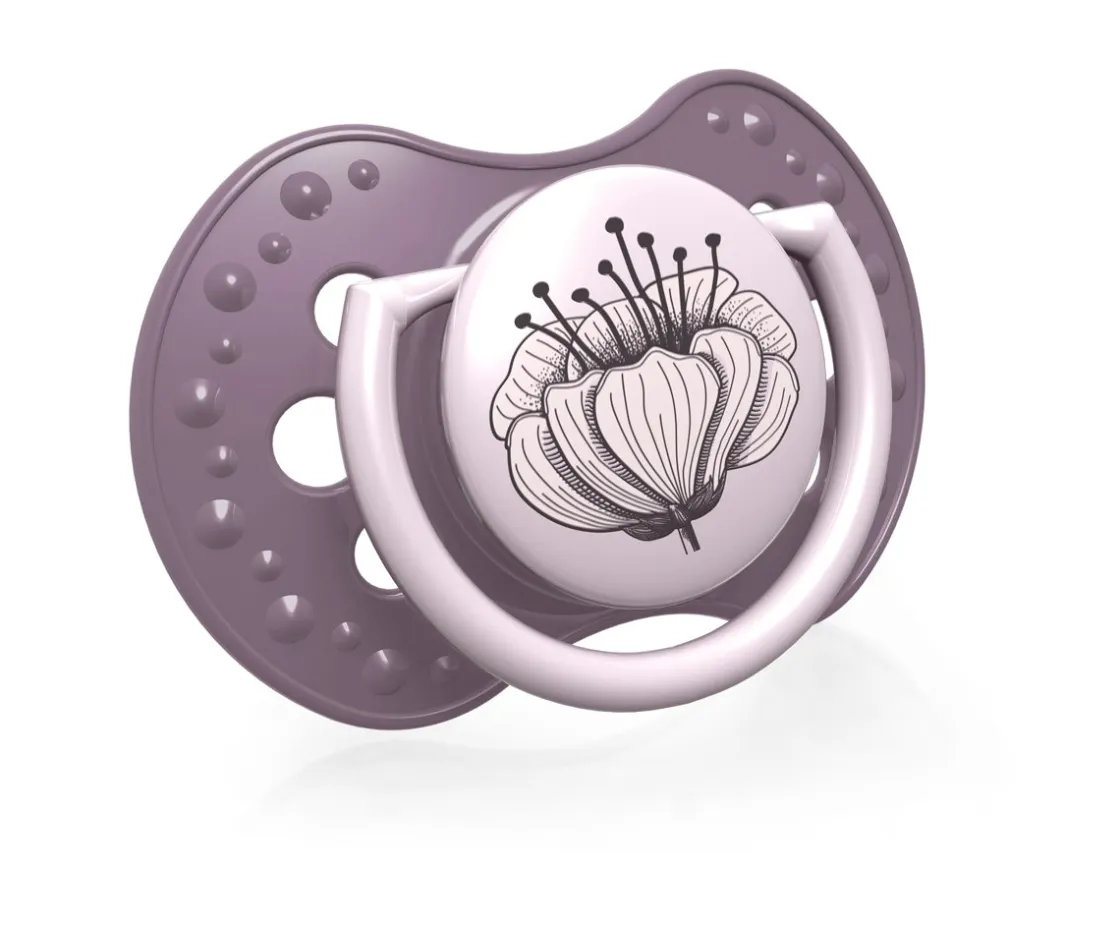 Fomenta el reflejo de succión saludable. Su forma exclusiva y su tetina dinámica ayudan a respirar libremente a través de la nariz y tragar saliva; evitan el reflejo de morder el chupete y permiten el desarrollo correcto del habla y del encaje de los maxilares (siguiendo las recomendaciones de especialistas en ortodoncia y logopedia).