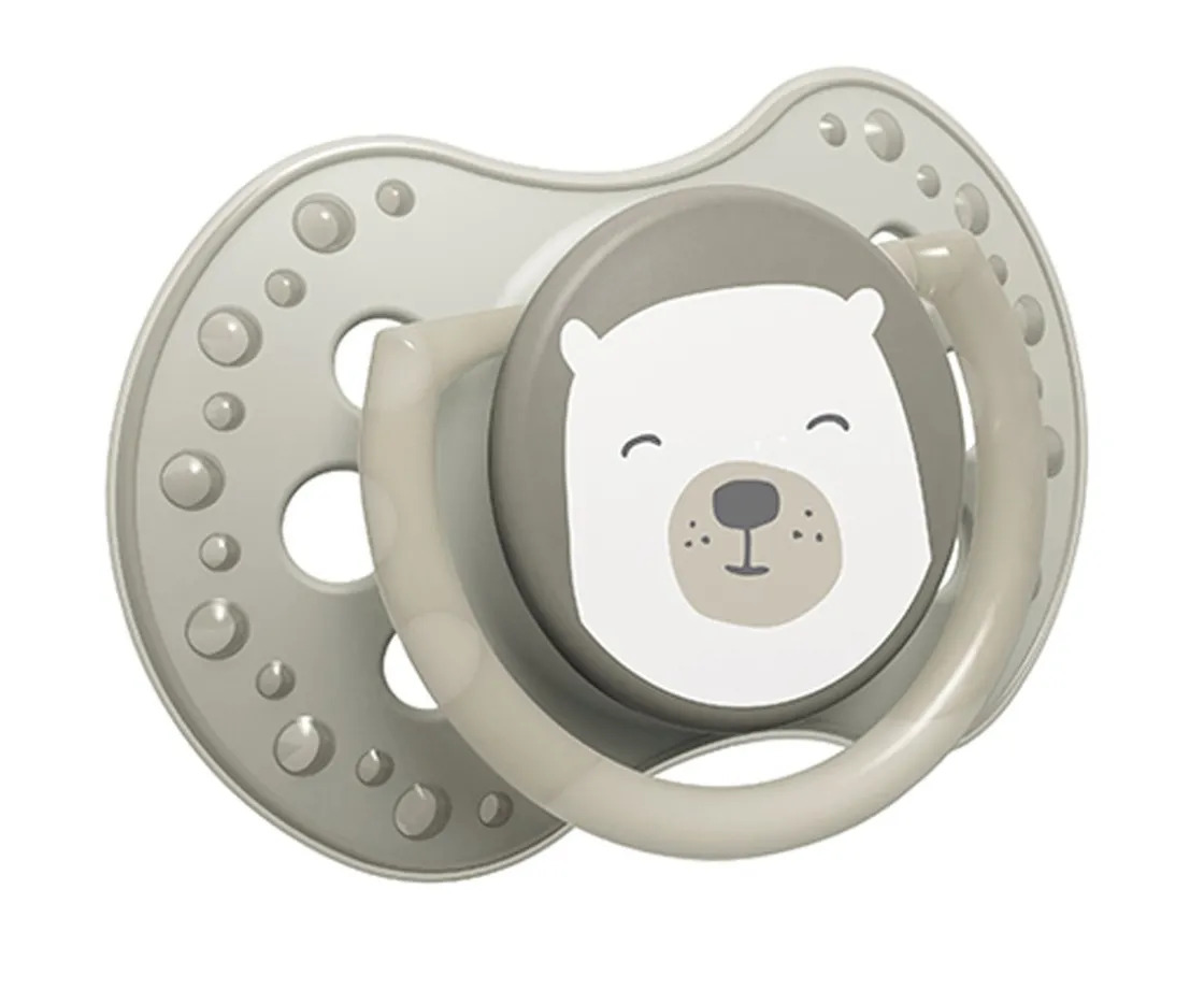 Fomenta el reflejo de succión saludable. Su forma exclusiva y su tetina dinámica ayudan a respirar libremente a través de la nariz y tragar saliva; evitan el reflejo de morder el chupete y permiten el desarrollo correcto del habla y del encaje de los maxilares (siguiendo las recomendaciones de especialistas en ortodoncia y logopedia).