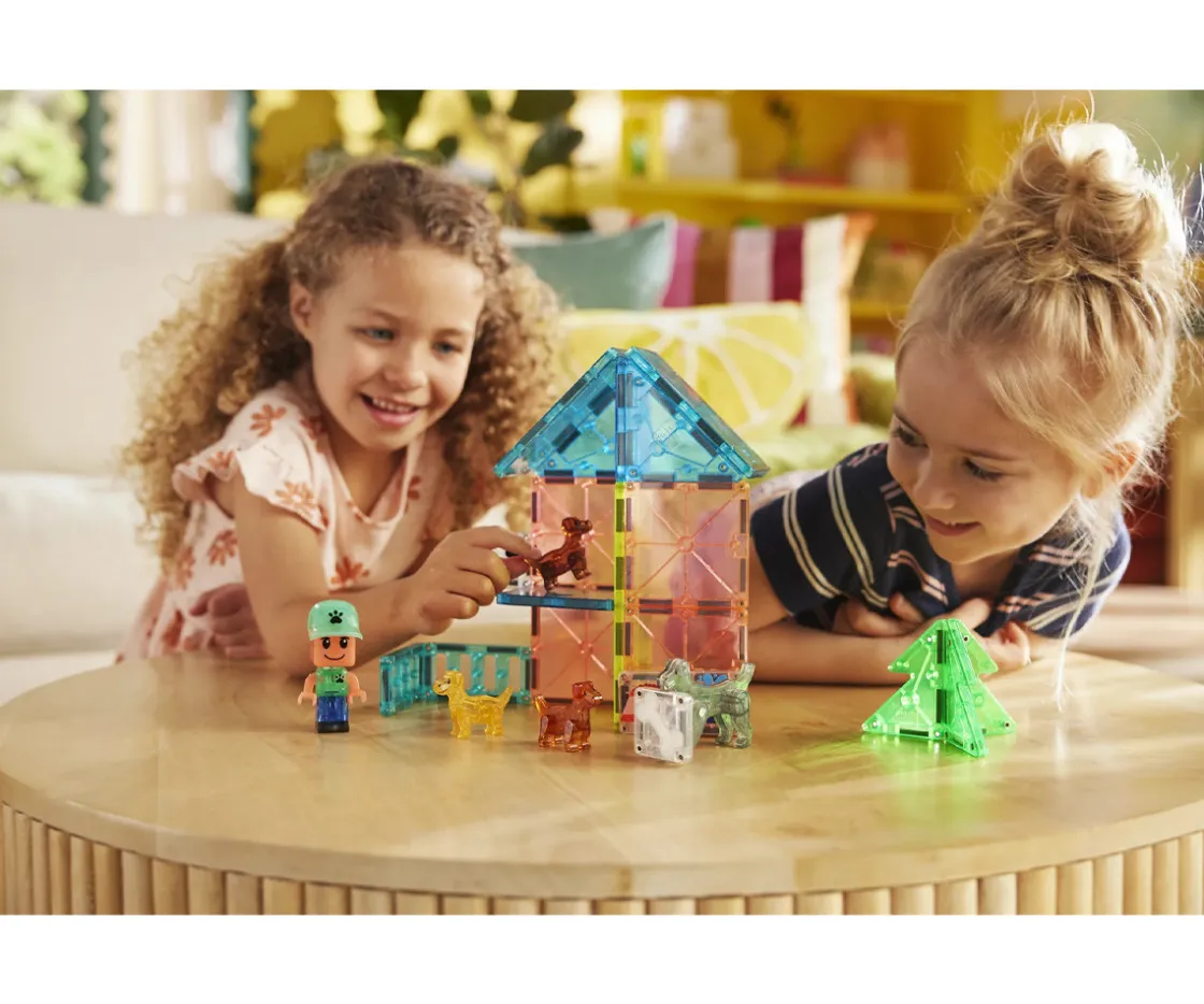 El Magna-Tiles Puppy Park invita a los niños a crear su propio parque canino, lleno de aventuras, circuitos de entrenamiento y escenarios divertidos para sus nuevos amigos de cuatro patas. Incluye 4 figuras de mascotas (3 cachorros y un cuidador), piezas combinables para crear personajes únicos y elementos magnéticos para diseñar piscinas, zonas de juego y recorridos de obstáculos.