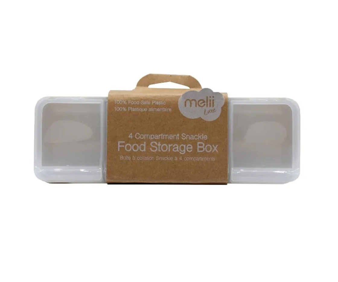 La caja snackle de 4 compartimentos de Melii, es la solución perfecta para llevar las meriendas organizadas y siempre a mano. Cuenta con 4 compartimentos con tapas individuales, ideales para separar distintos alimentos sin que se mezclen ni se aplasten. Robusta y práctica, con cierre a presión asegura frescura y evita derrames, siendo ideal para excursiones, cole o viajes en coche.