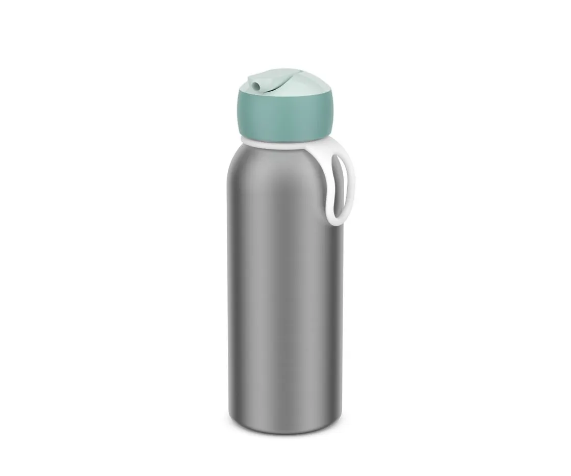 Esta botella de acero mantendrá la bebida de tu peque fresquita durante más tiempo. La botella tiene un práctico sistema abatible, fácil de usar incluso por los más pequeños. ¡Simplemente levante el pitorro y listo para beber! Cuenta con una pajita en el interior. Además, lleva un clip para poder colgarla del cinturón o en una bolsa. Esto evitará que la bolsa se moje si a alguna gota se le ocurre escapar de la boquilla después de beber.