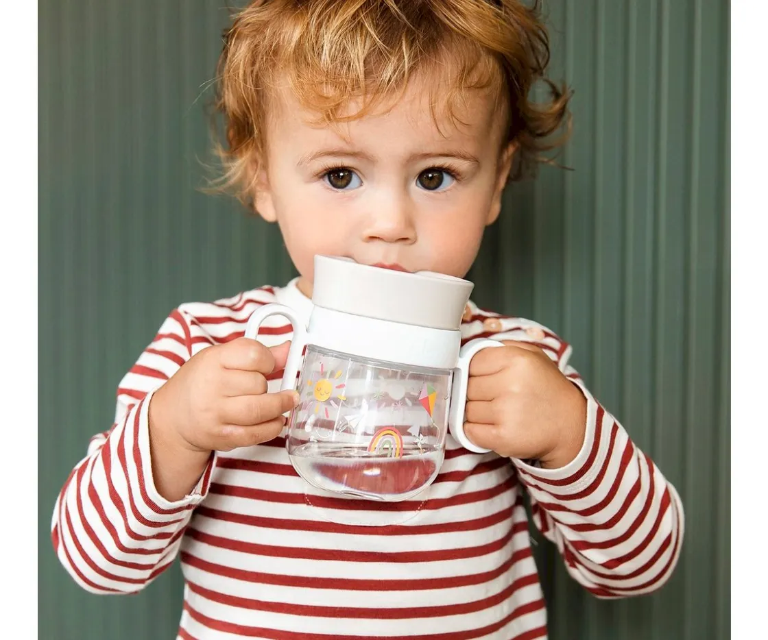 - El vaso 360º es a prueba de fugar y permite al peque beber desde cualquier parte de su borde