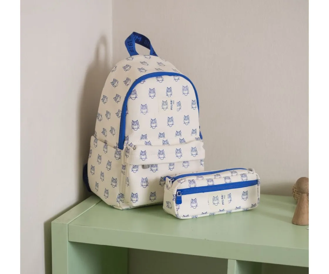 Su estampado de búhos en azul marino sobre fondo beige no solo es bonito y original, sino que también añade un toque divertido y elegante al material escolar.