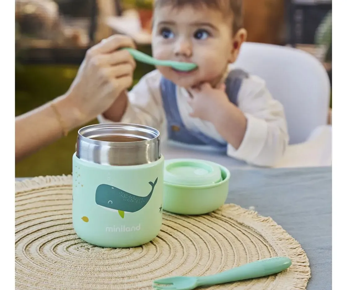 Mini termo de Miniland con capacidad de 280 ml, ideal para conservar la comida de tu bebé a la temperatura perfecta.