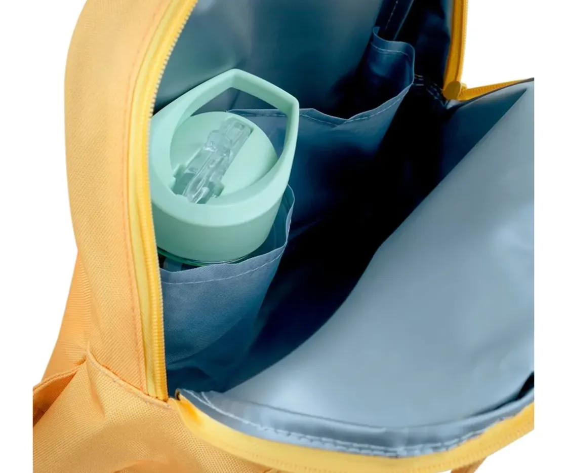 En su interior cuenta con un compartimento principal térmico para mantener la temperatura de hasta dos botellas en posición vertical, evitando derrames. Incluye un bolsillo frontal para pequeños accesorios y una etiqueta exterior para personalizar con el nombre del peque.