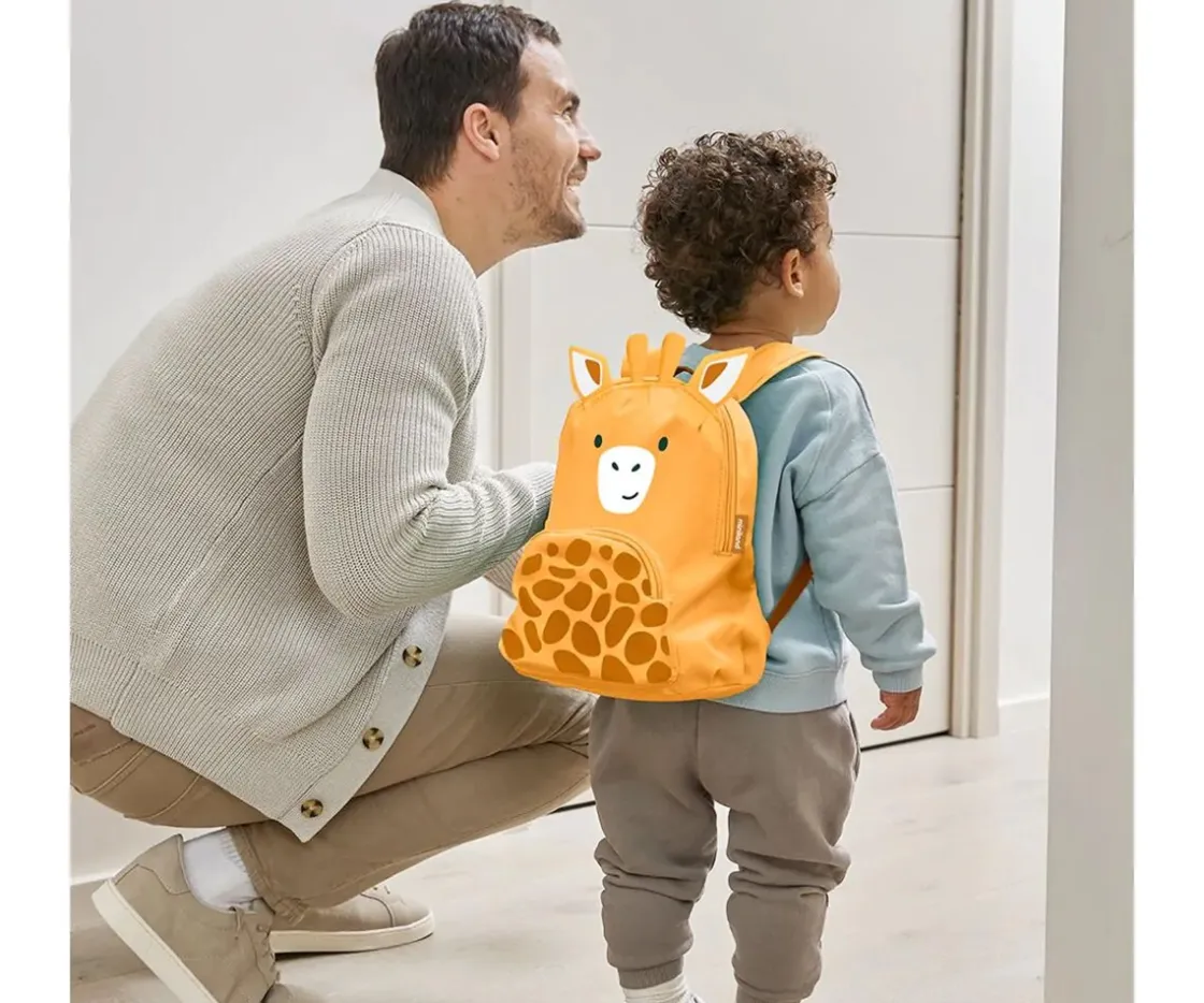 Mochila infantil de una divertida jirafa de la colección Jungle de Miniland, ideal para llevar al parque, la guardería o excursiones.