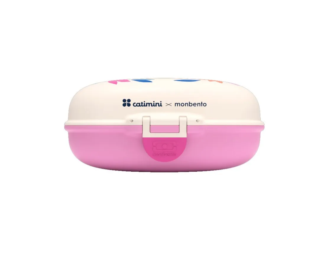 Con un look marcado por su lengüeta de cierre, esta snack box de formas divertidas puede personalizarse gracias a sus pegatinas intercambiables.