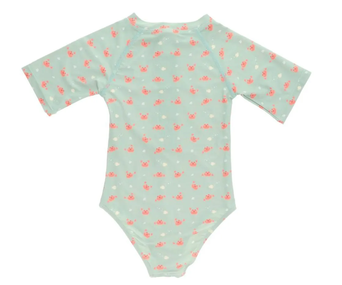 Bañador con cremallera delantera de la colección Crab Sage de Monnëka que ha sido creado con una tela especial que protege a la piel de los rayos solares