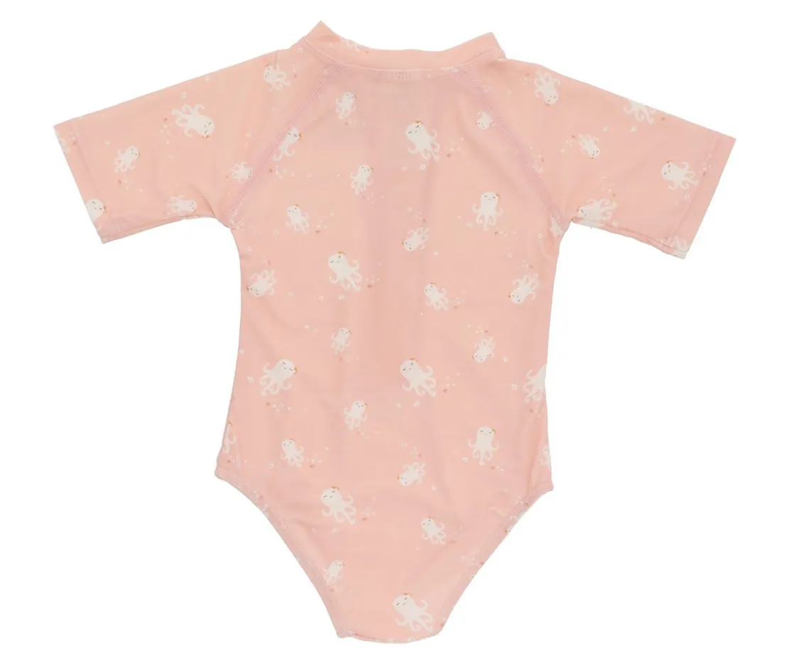 Bañador con cremallera delantera de la colección Jolie The Octopus de Monnëka que ha sido creado con una tela especial que protege a la piel de los rayos solares