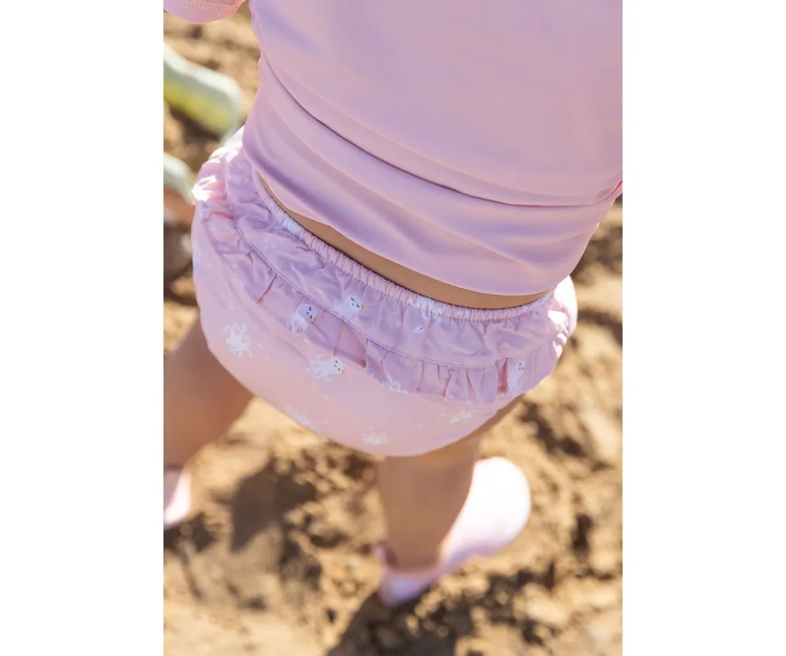 Bañador pañal de la colección Fishes de Monnëka que ha sido creado con una tela especial que protege a la piel de los rayos solares además que evita fugas sólidas cuando el peque se está bañañdo en la playa o la piscina.