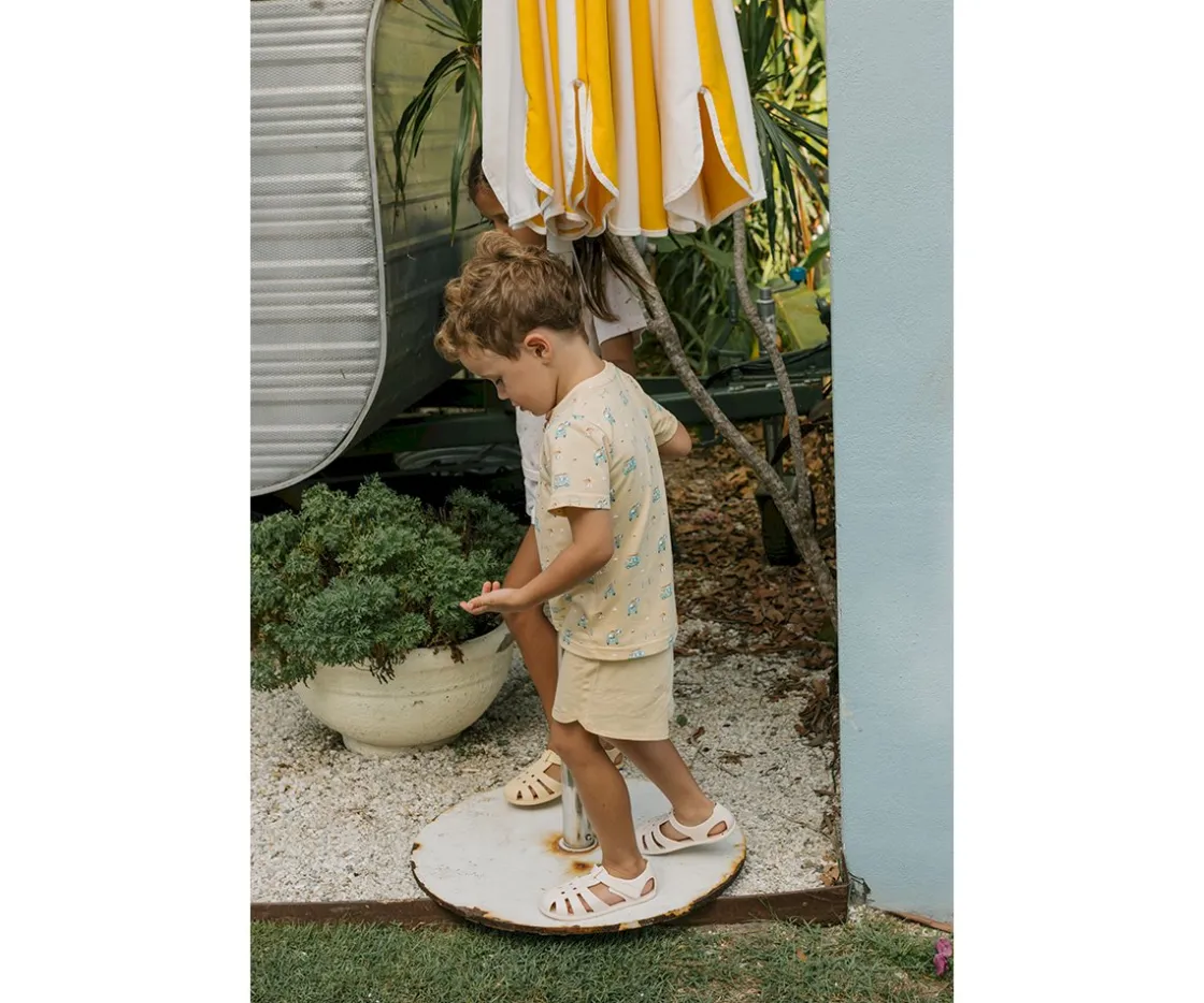 Es muy suave, de manga corta y cuello redondeado e ideal para llevar durante el verano con el resto de accesorios de playa de la colección Surf Van que puedes encontrar haciendo clic