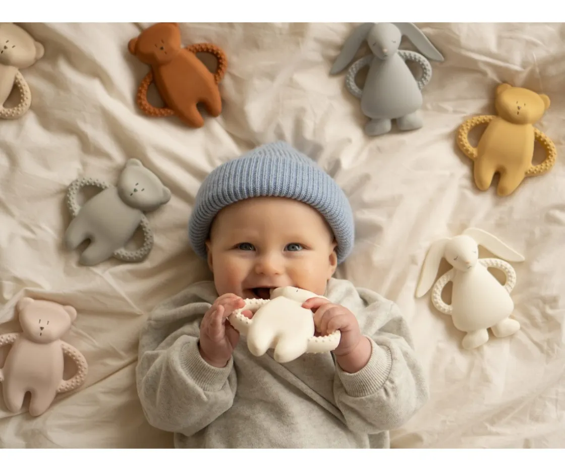 ¡Alivia las encías de tu peque con los mordedores de caucho natural de Moonie!