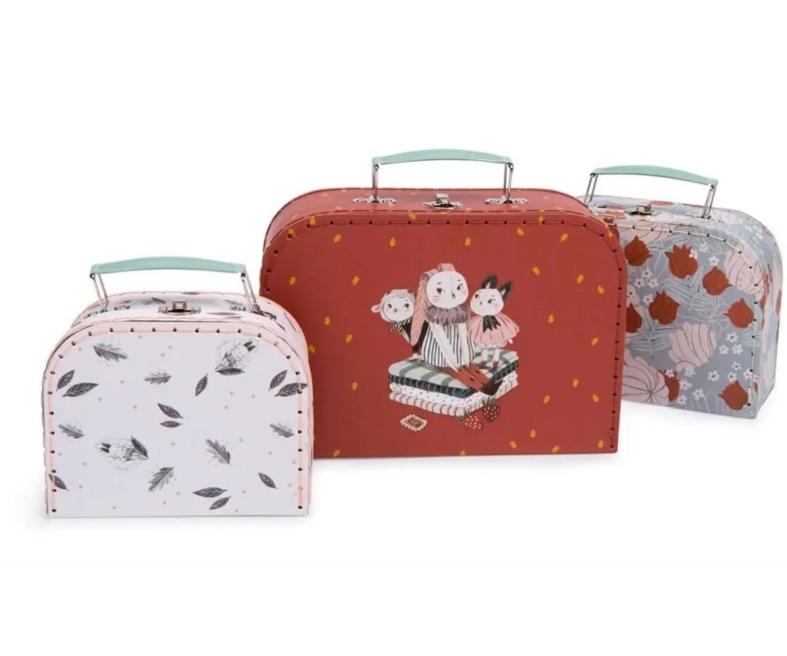 Este conjunto de 3 maletines son perfectos para guardar los muñecos, para jugar, decorar la habitación infantil o llevarlos a cualquier parte.