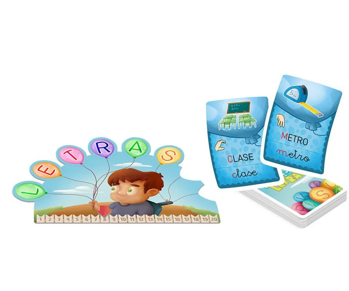 - Incluye: 4 tableros, 4 marcadores de puntos, 88 globos con letras de doble cara, 96 cartas de 3 niveles de dificultad, 1 carta de La Fiesta de las Letras e instrucciones con diferentes modos de juegos