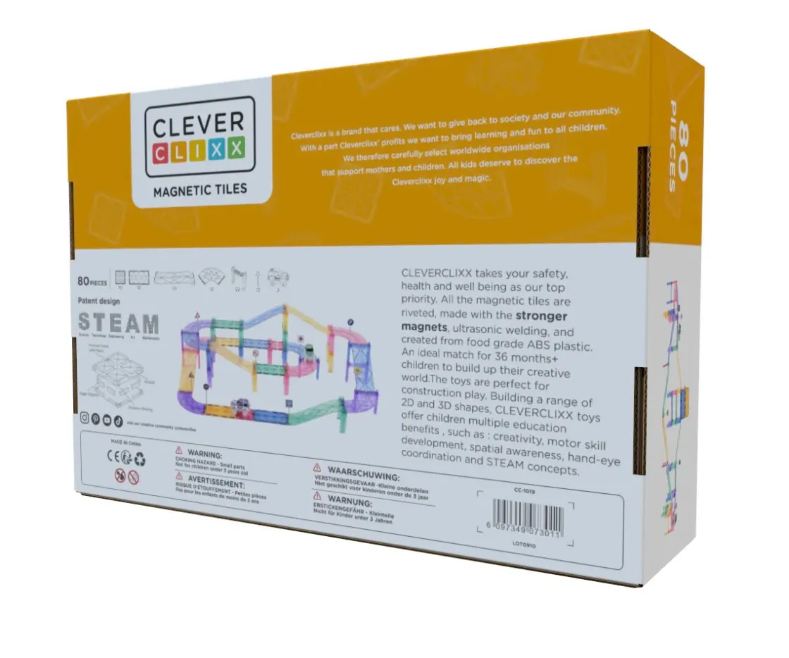 Cleverclixx es una marca europea que fabrica juguetes dirigidos a reunir a las familias a través del juego creativo. Sus losetas magnéticas de colores son resistentes, seguras y contienen imanes muy potentes para que la familia al completo disfrute de la construcción de figuras, edificios y todo lo que puedas imaginar en 2D y 3D.
